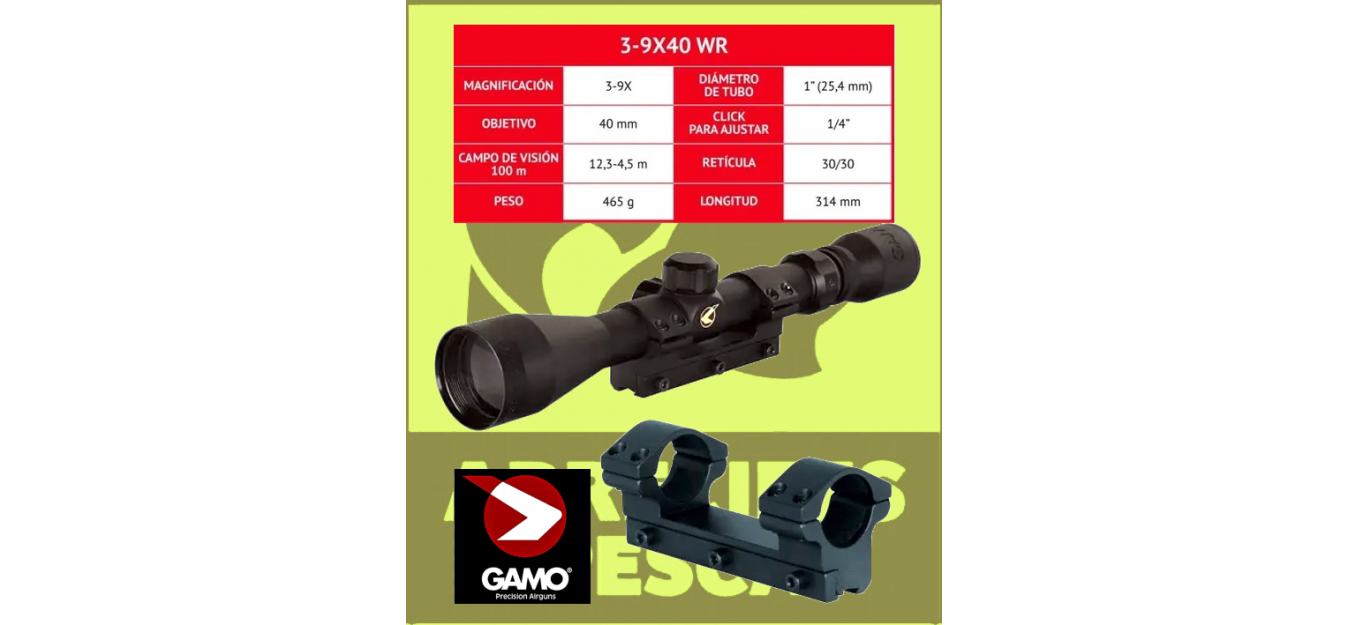 o Visor telescópico GAMO de aumentos variables 3-9X40
